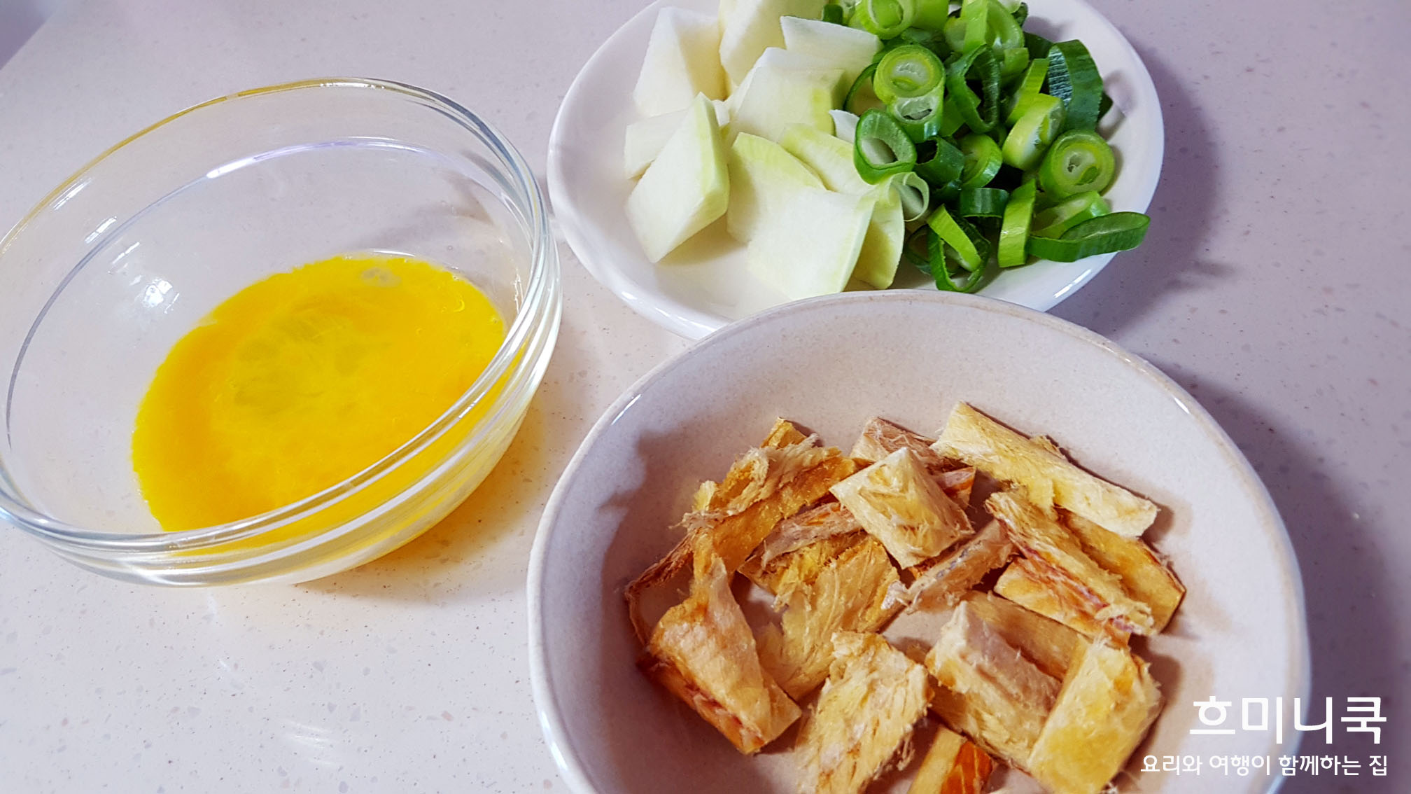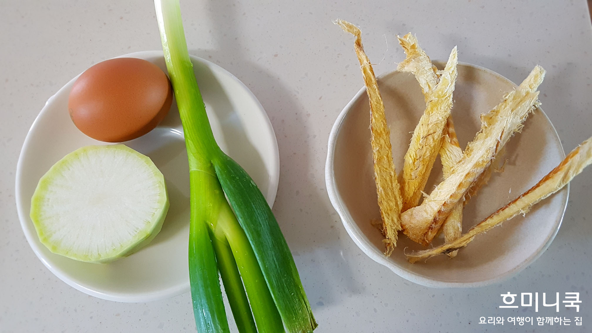 북어, 계란, 무, 대파의 재료 손질이