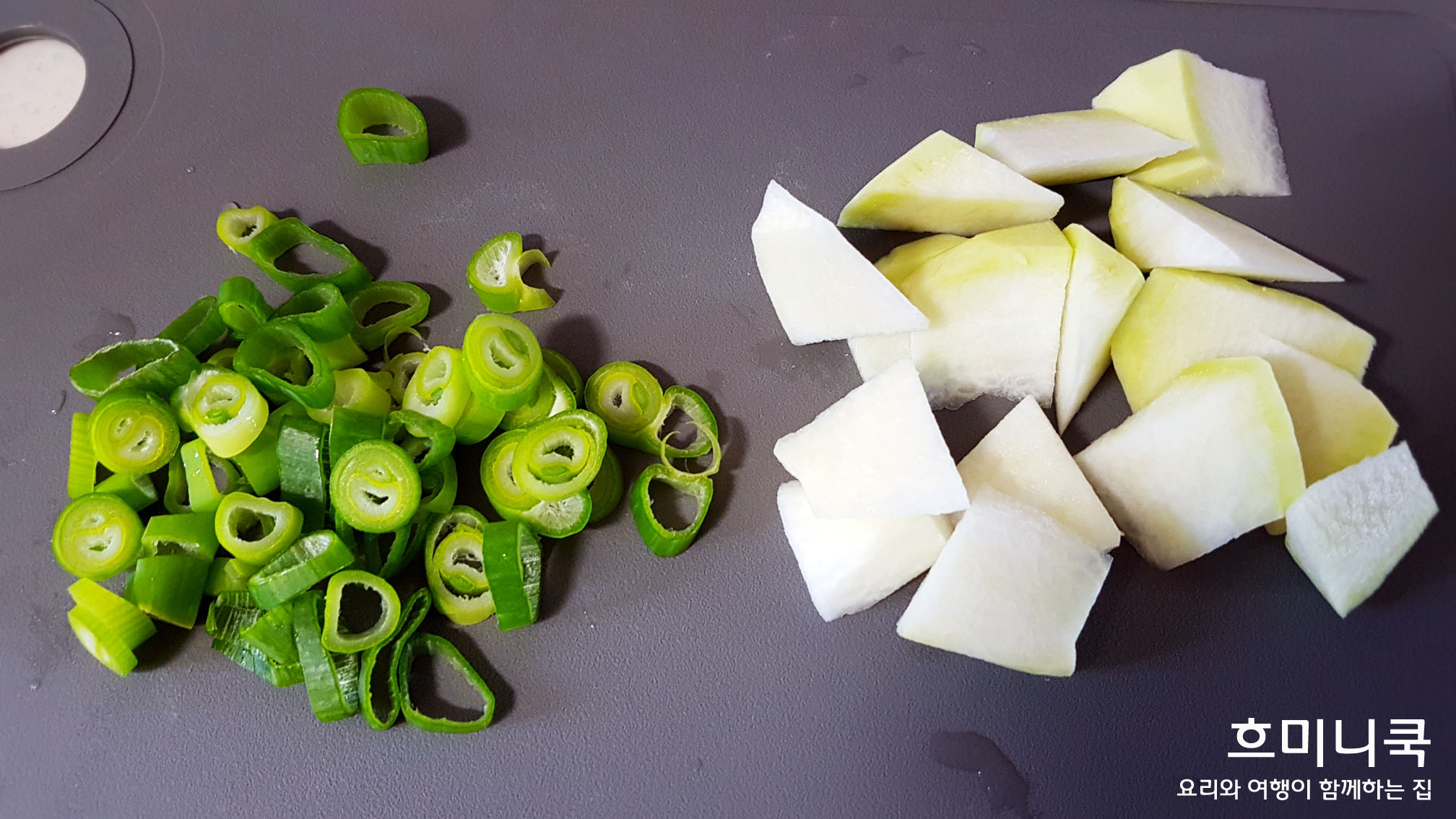 무는 어슷 썰어 준비해주세요.